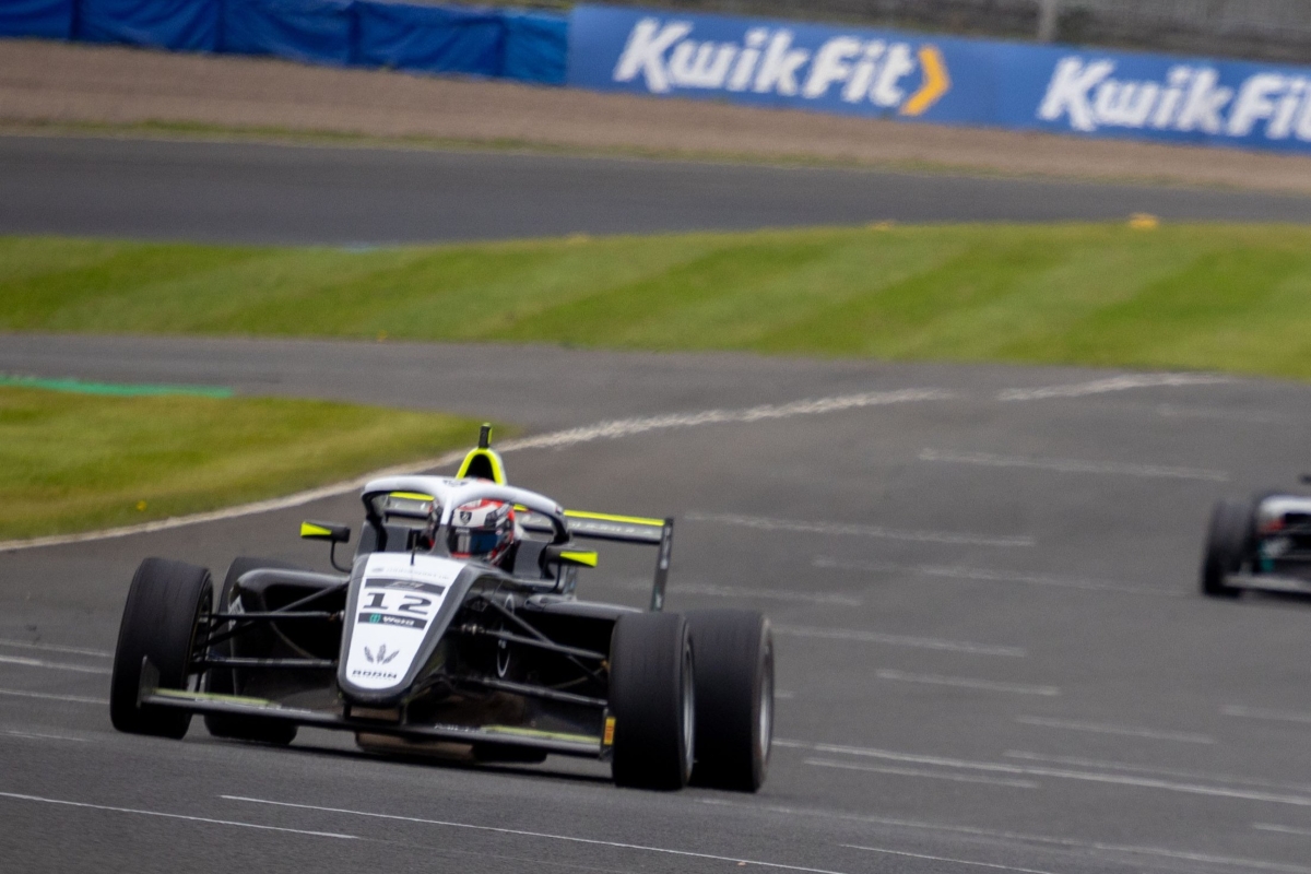 Adam Al Azhari won British Formula 4’s reversed-grid race at Knockhill ahead of a charging Tommy Harfield.