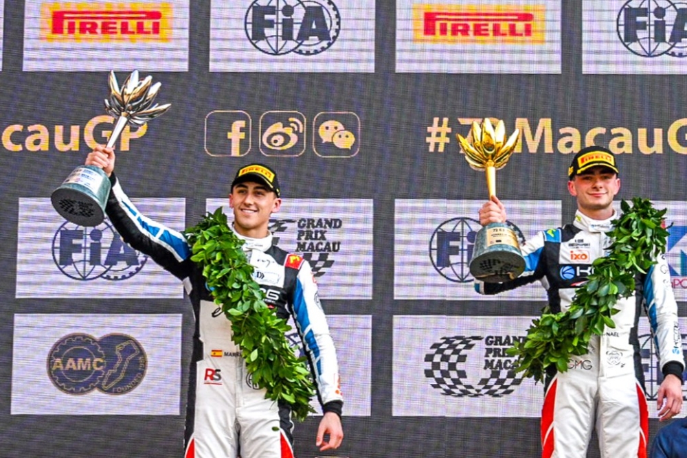 There was mixed feelings on the podium of last Sunday’s Macau Grand Prix, as Pinnacle Motorsport’s drivers received their wreaths, trophies and were then interviewed after finishing one-two. Mari Boya had driven a tactile race which earned him the lead twice, but came home runner-up to Theophile Nael who “was not breathing” through the last lap after getting to the front.