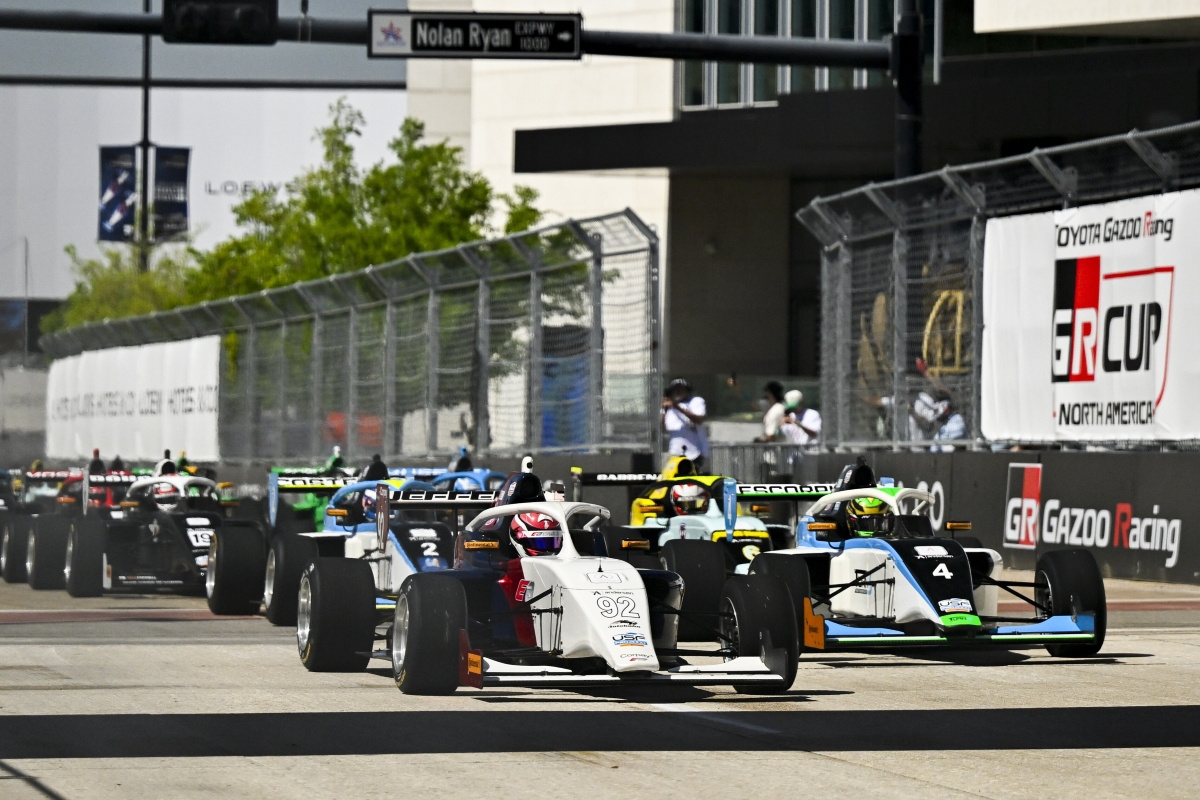 Jack Jeffers took a lights-to-flag victory in the second USF Pro 2000 race in Arlington, as Frankie Mossman left round one with the points lead.