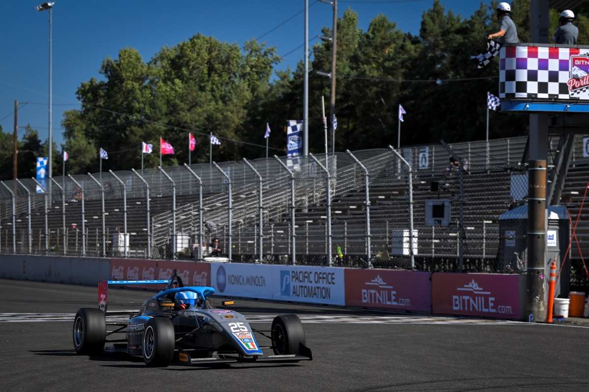 Teddy Musella won the final race of the USF2000 season at Portland to become championship runner-up by one point.