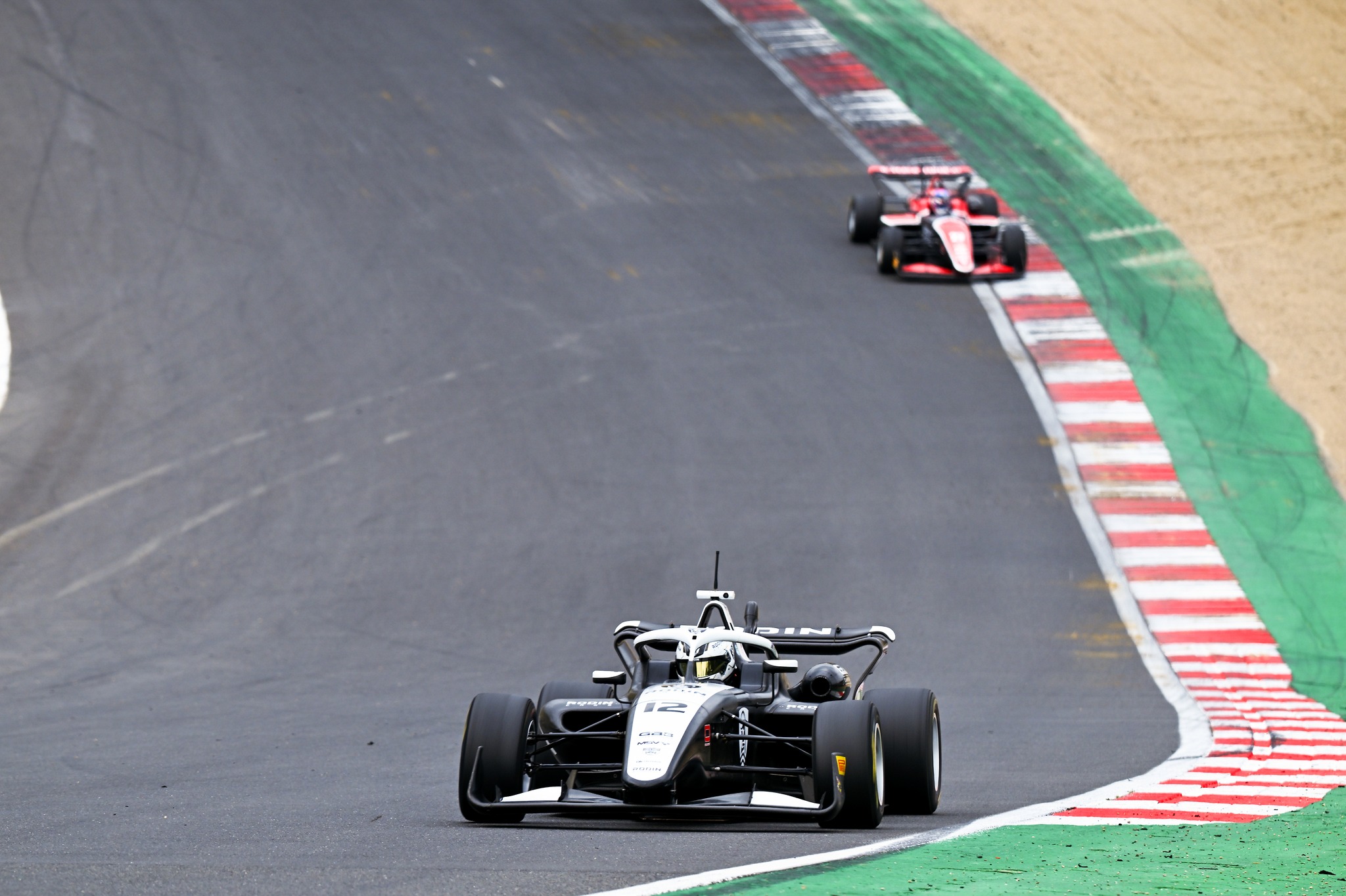 Rodin Motorsport’s Ninovic led away from pole at the start and resisted a challenge from Hillspeed’s Freddie Slater into Graham Hill bend, but the safety car was deployed before the first lap was completed after Hitech GP’s Keanu Al Azhari retired following a collision.