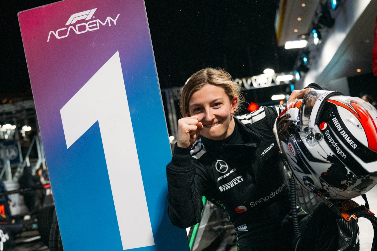 A composed drive earned Doriane Pin victory in F1 Academy’s first race around Las Vegas’s Strip circuit last night, and put her on the brink of title honours.