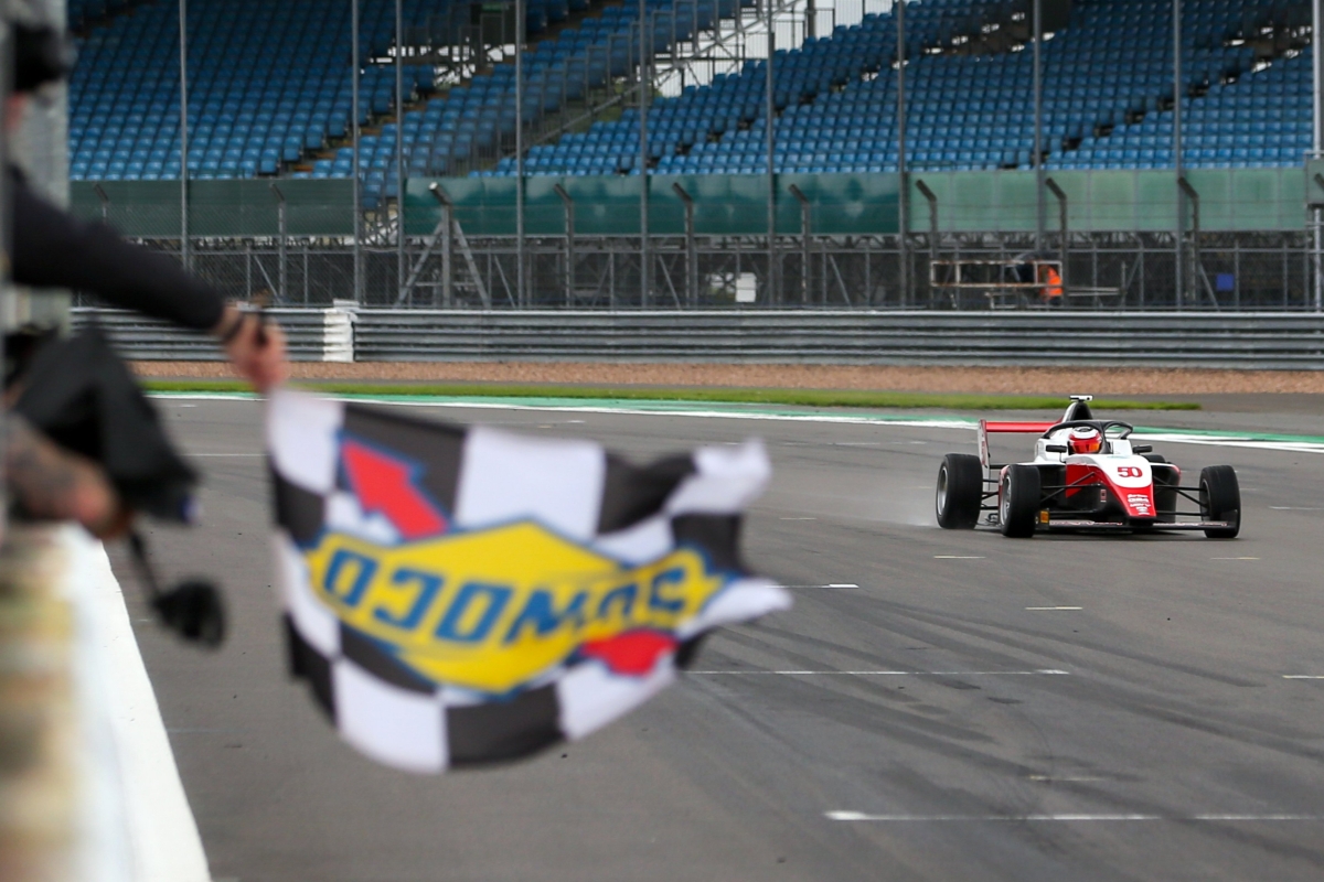 Fortec Motorsports’ Jack Taylor scored his second straight GB4 win as changeable weather mixed up the order in race two at Silverstone.